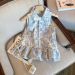 เดรสสีฟ้าวินเทจ ลายดอกไม้สีฟ้า แขนกุด